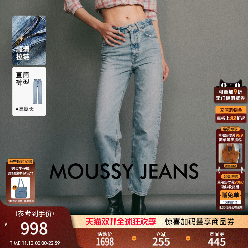 明星同款裤王MOUSSY直筒毛边磨损高腰牛仔裤女010GAS11-5440