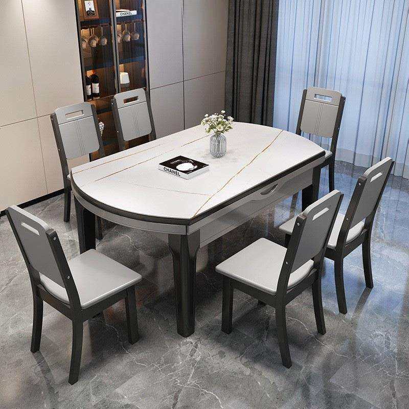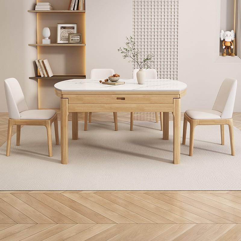 - 可伸缩餐桌椅组合 实木