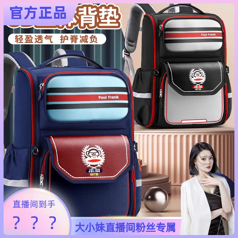 大嘴猴新款英伦风书包女孩小学生超轻便护脊一三到六年级减负儿童男孩大容量双肩书包3D立体高颜值