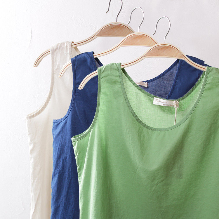 日系文艺女装夏装宽松纯棉无袖居C家打底纯色T恤女上衣背心休闲
