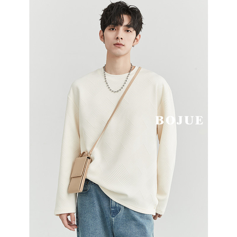 斜纹高级肌理感重磅卫衣男圆领 23春秋季韩版宽松长袖打底纯色T恤