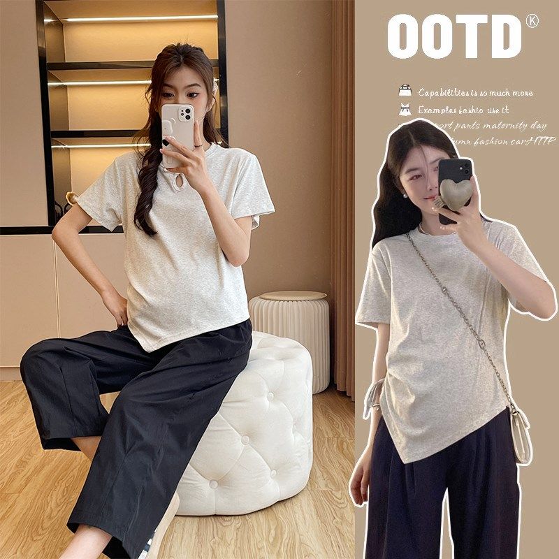 国风孕妇装夏季宽松抽绳设计感短袖上衣宽松显瘦休闲打底纯色T恤