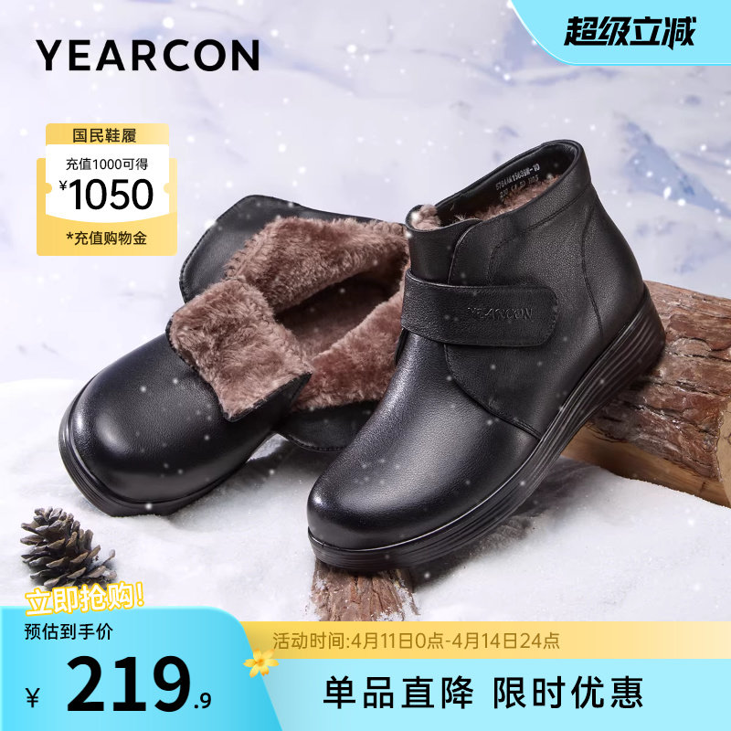 意尔康女鞋2025冬季短靴真皮短筒皮靴中老年妈妈棉鞋加绒奶奶皮鞋