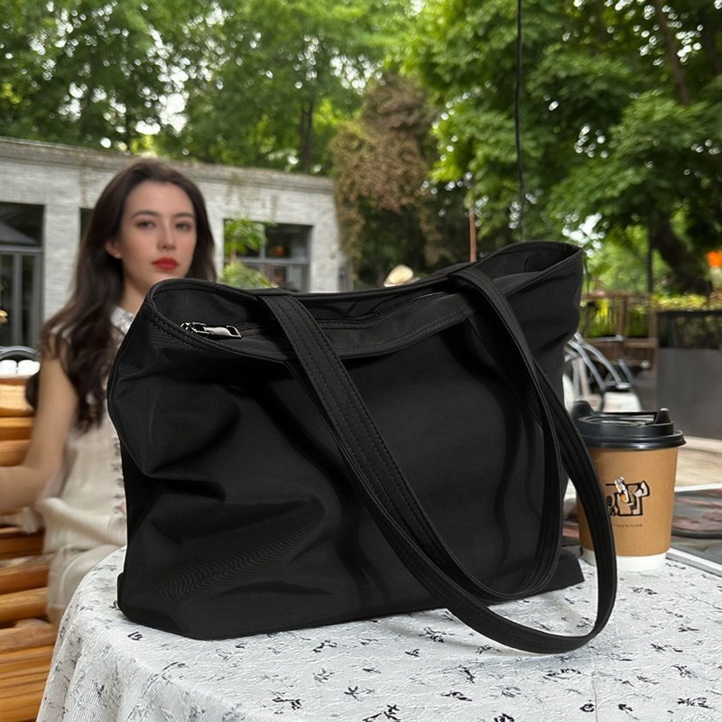 拉链托特包女上课包包黑色单肩女包大容量帆布包电脑上班手提大包