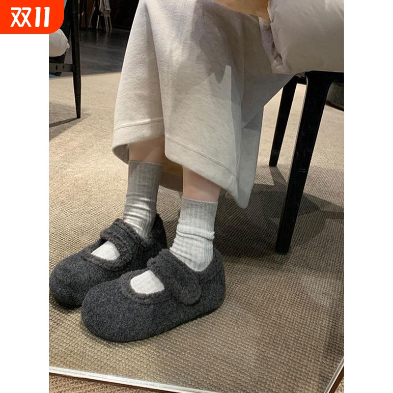 - 粗跟单鞋兔毛