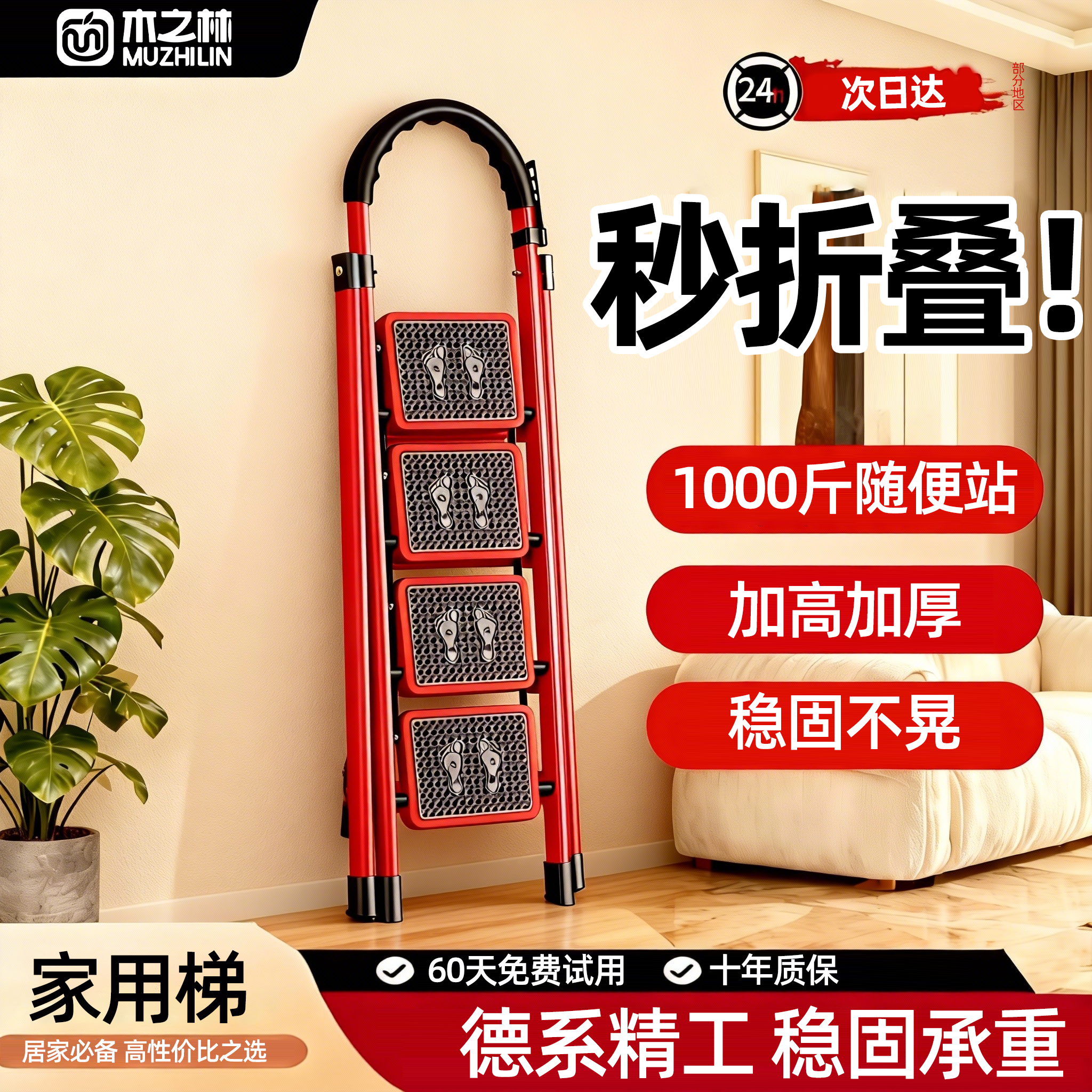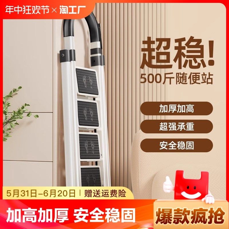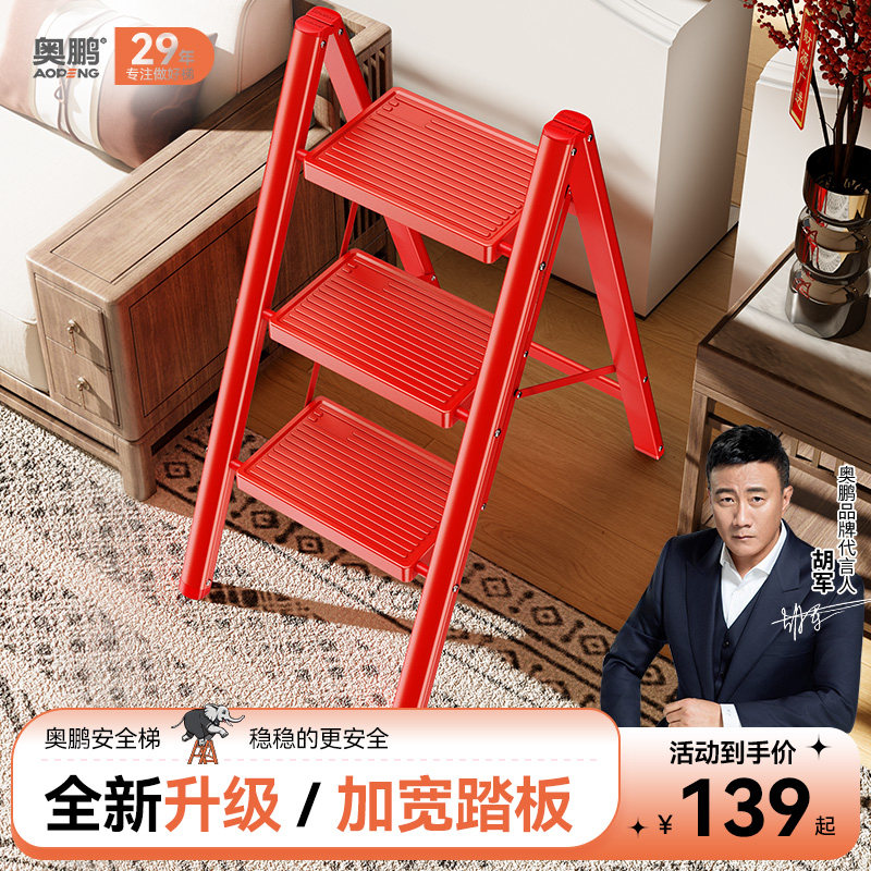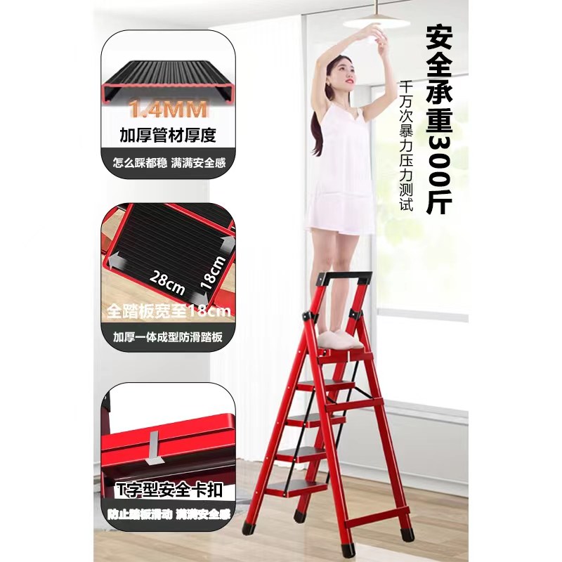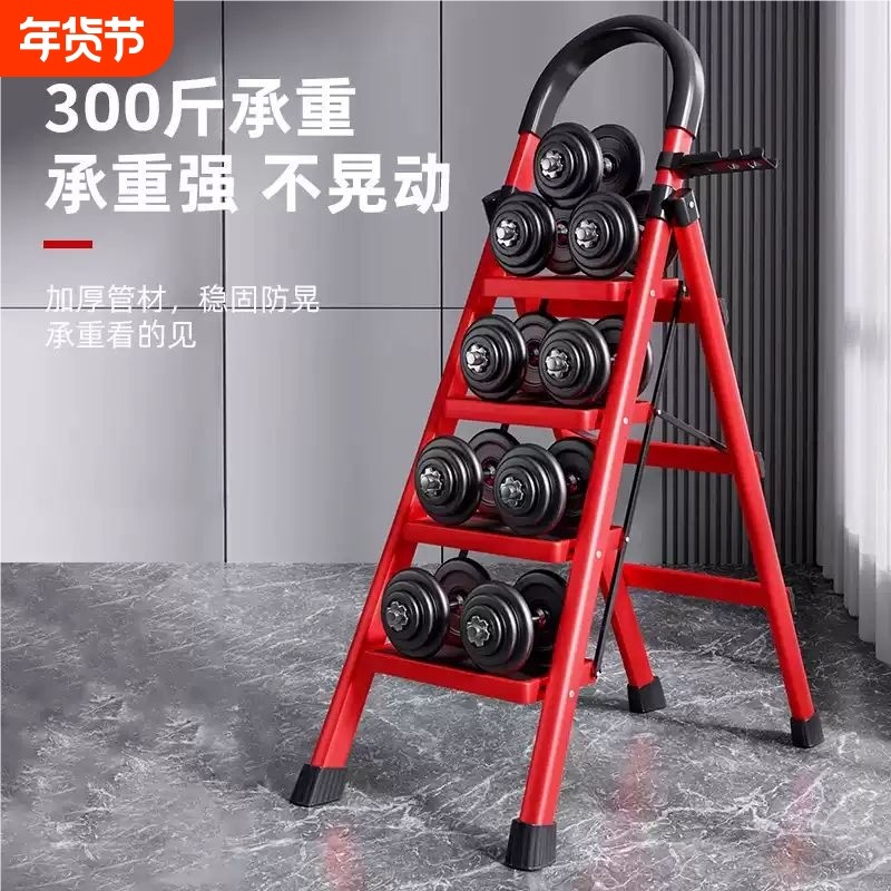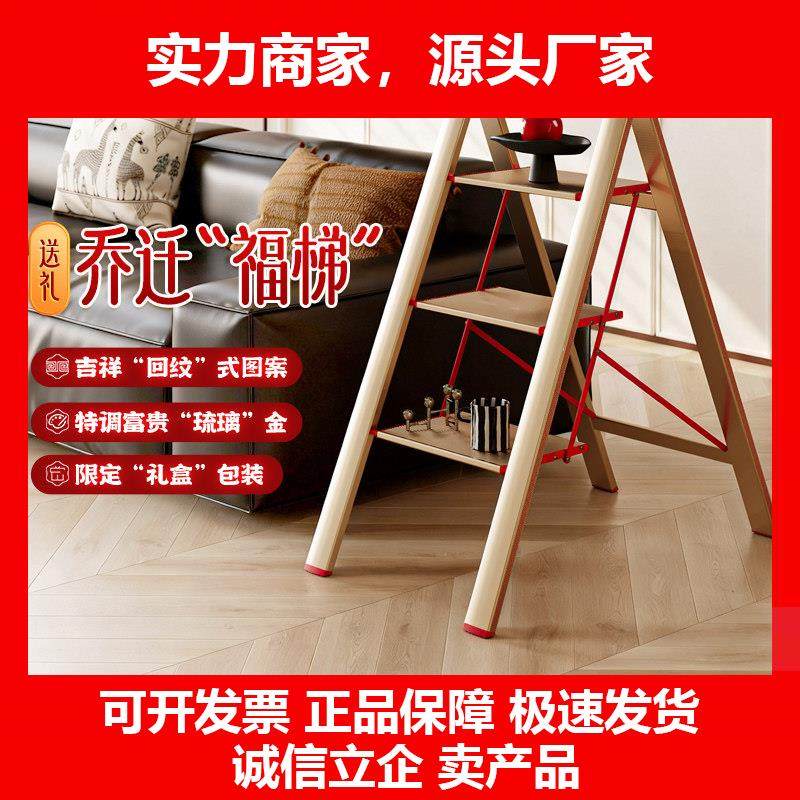 乔迁新居梯子红色搬家家用折叠加厚室内楼梯多功能人字梯三步梯凳