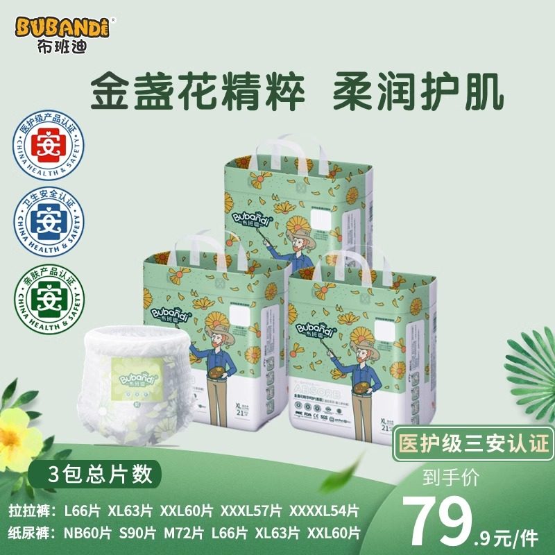 布班迪金盏花尿不湿婴儿拉拉裤男女宝宝专用纸尿裤旗舰店透气薄款