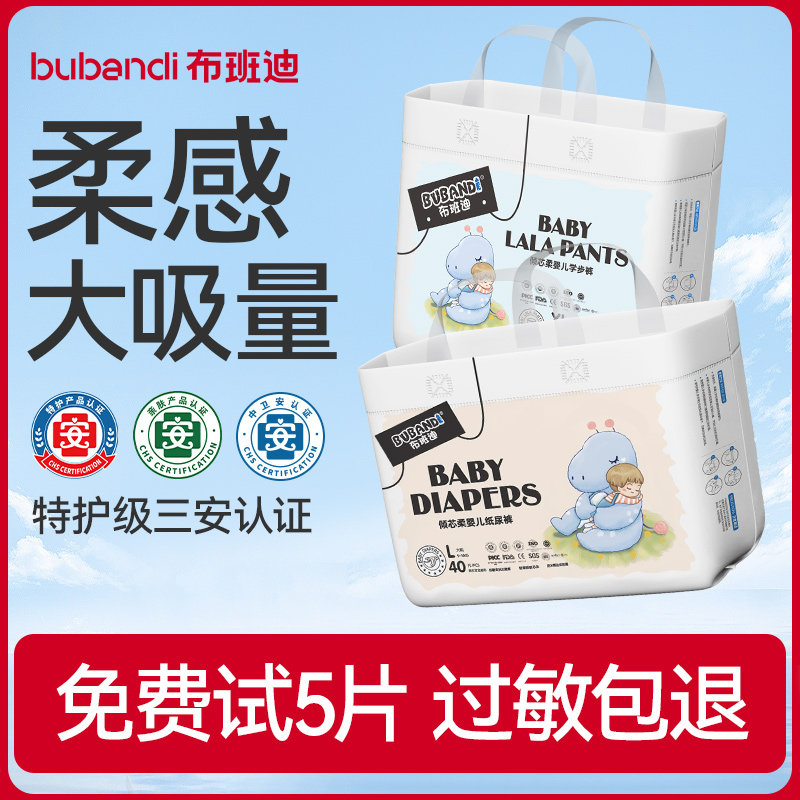 布班迪纸尿裤官方旗舰店女男宝宝拉拉裤婴儿专用甄芯薄尿不湿超薄