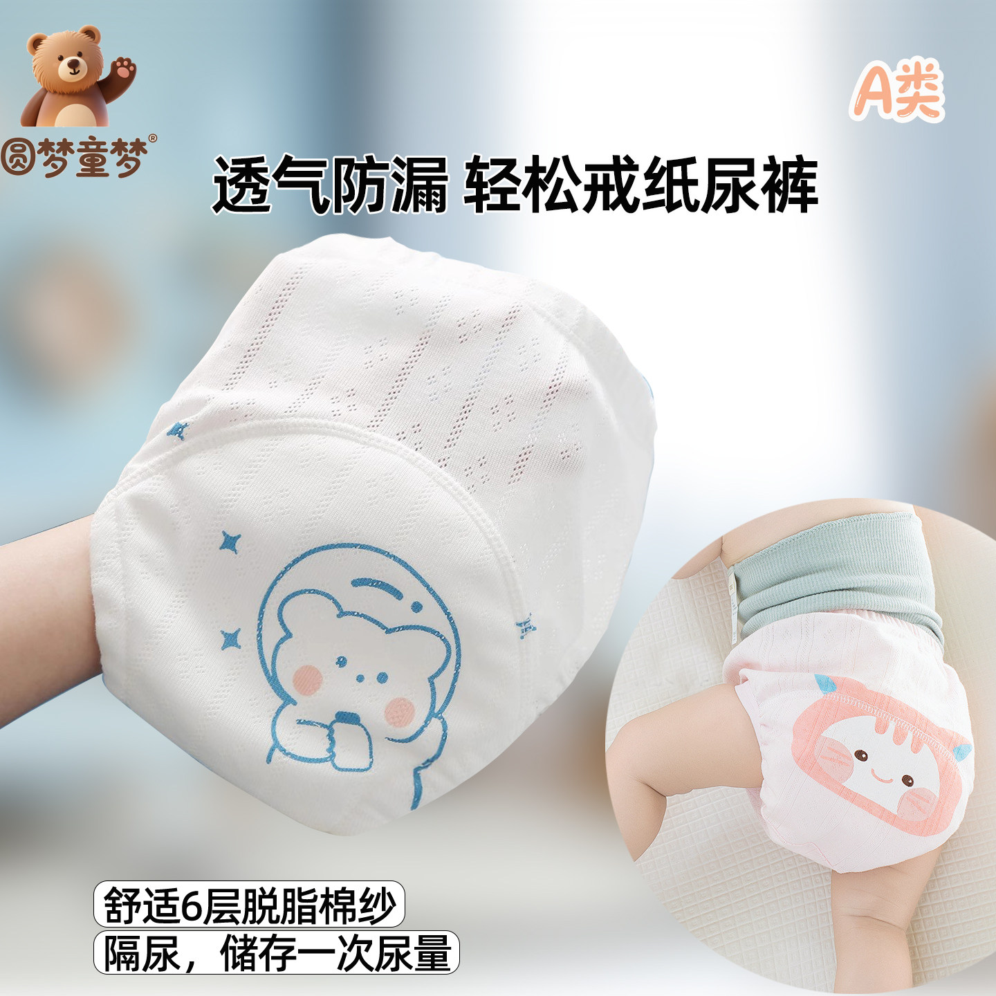 男宝女宝宝布尿裤训练裤防漏a类透气隔尿裤可洗尿布裤纱布练习裤