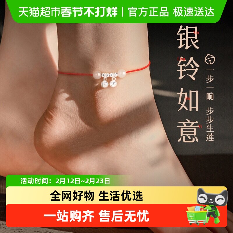 中国黄金珍尚银纯银铃铛脚链女脚绳小众设计情人节礼物送女友S925