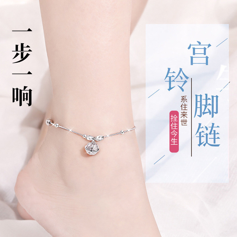 925纯银宫铃脚链女本命年古风铃铛脚环ins小众设计感轻奢转运足链