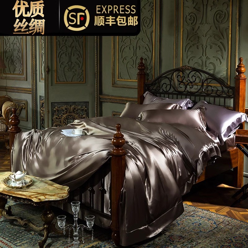 重磅轻奢真丝床单四件套桑蚕丝滑裸睡凉感丝绸被套高级感床上用品