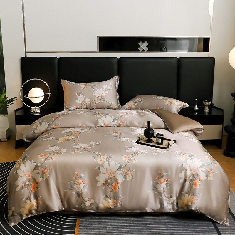 复古A类60支天丝印花四件套冰丝简约款被套床笠凉感丝绸床单床品