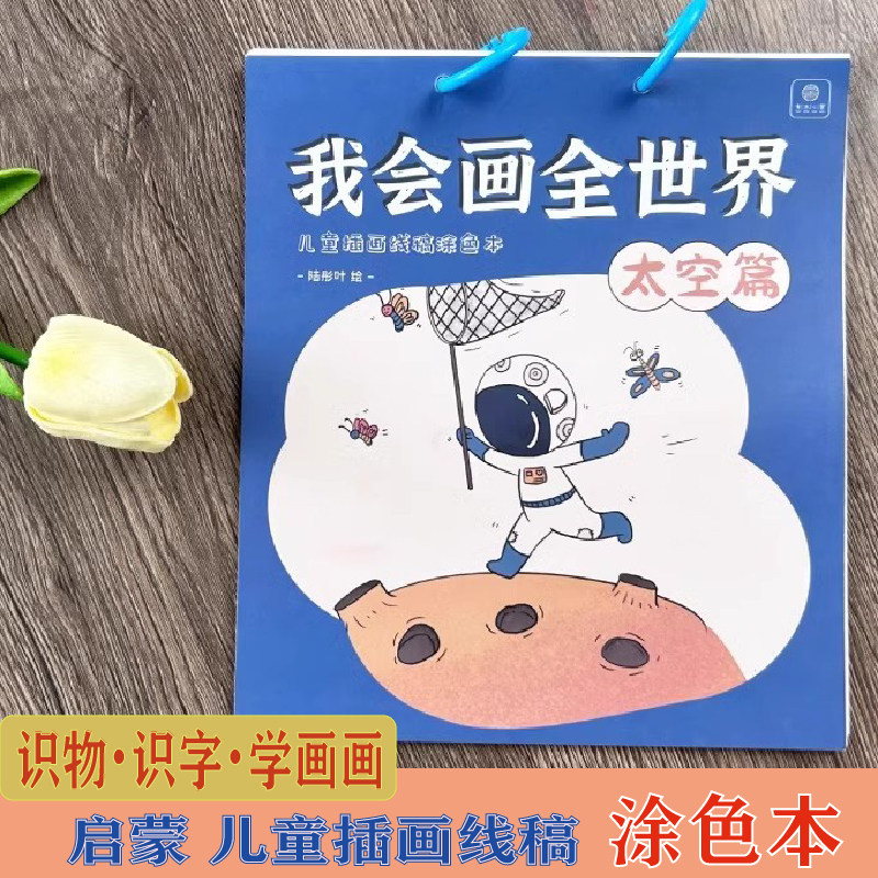 太空宇航员可爱线稿 幼儿涂色画画本 儿童画画本临摹描摹控笔练习
