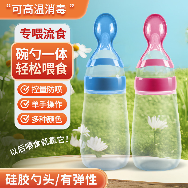 喂米糊勺奶瓶婴儿挤压硅胶喂食器宝宝吃米粉辅食软勺工具喂奶神器