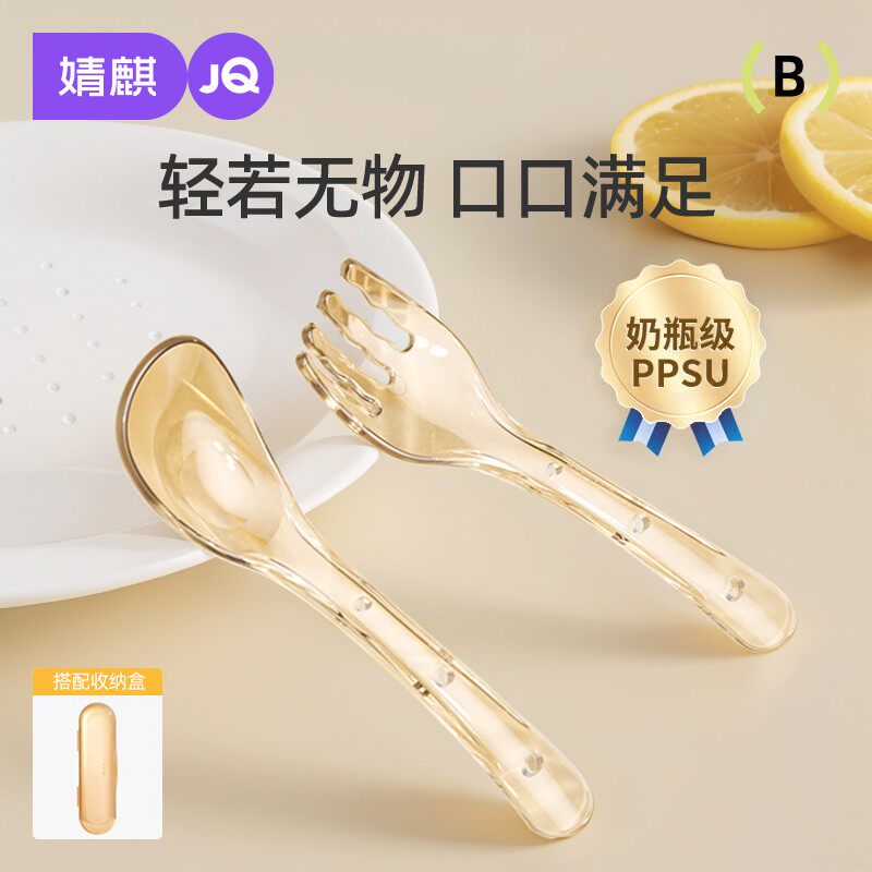 婧麒宝宝辅食勺儿童透明叉勺婴儿辅食勺奶瓶级PPSU宝宝吃饭勺调羹