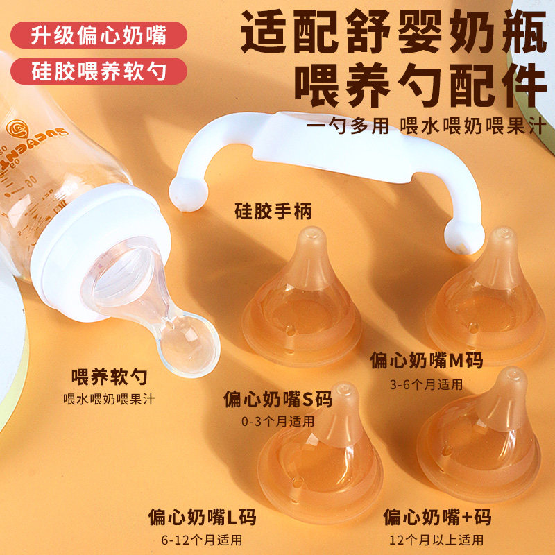 适配贝亲奶瓶奶嘴勺子通用配件宽口径新生婴儿喂水喂奶可挤压硅胶
