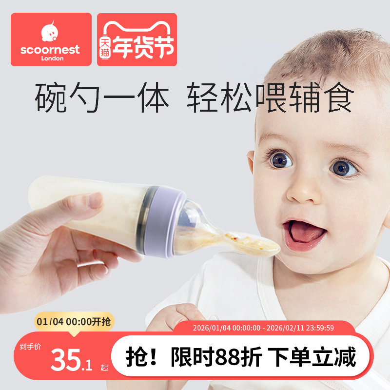 皇觉儿童餐具米糊勺奶瓶挤压式喂养勺吃米粉硅胶勺子喂食器辅食勺