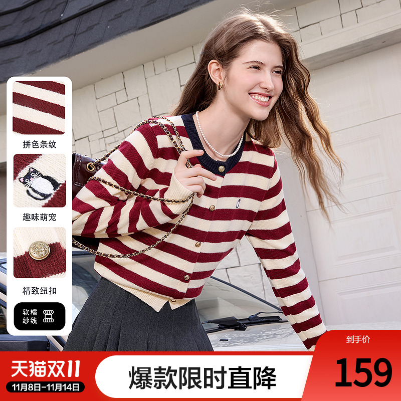 betu百图经典撞色条纹针织衫女套头2025年秋季新款圆领毛衫上衣