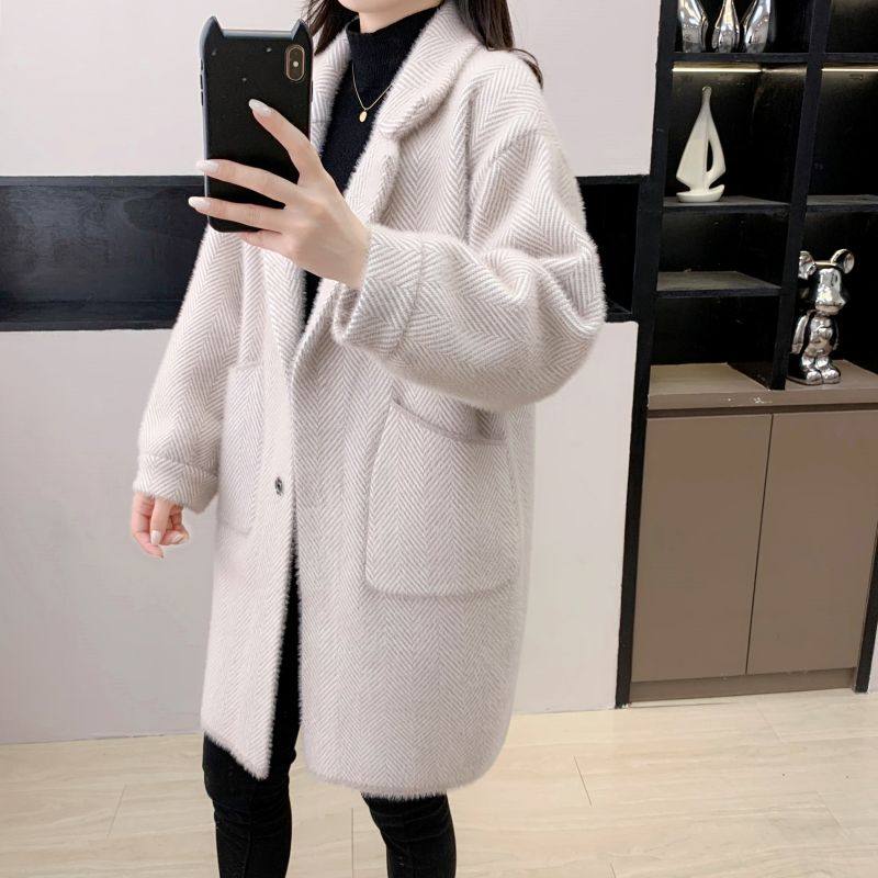 水貂绒加厚外套女中长款2025秋冬大衣韩版宽松显瘦双面尼毛衣开衫
