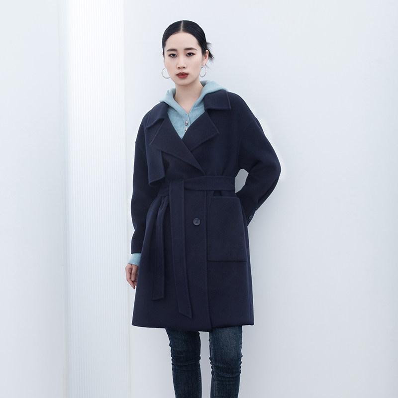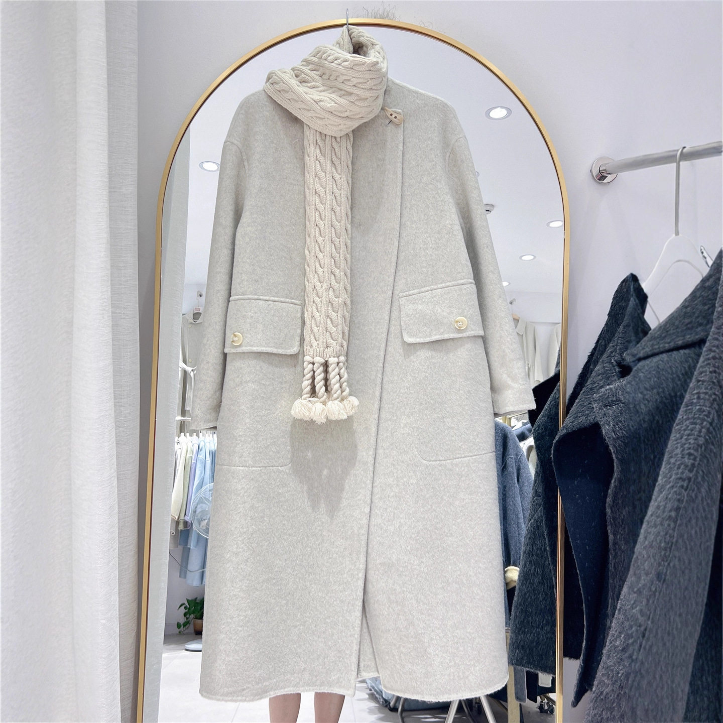 2024新款秋冬羊毛大衣纯手工双面尼外套中长款双面羊绒毛呢大衣女