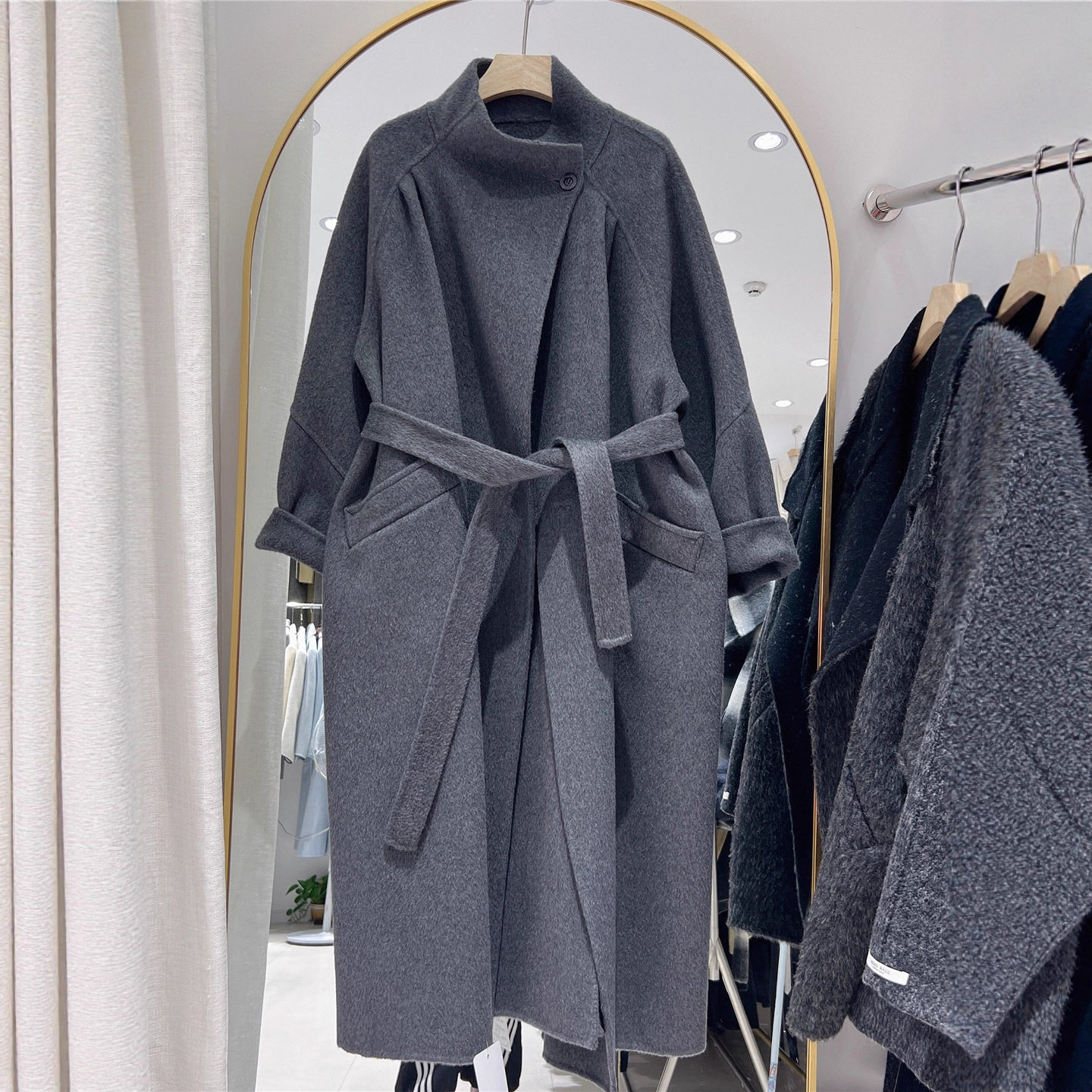 秋冬反季赫本风双面羊绒大衣女中长款落肩袖宽松茧型羊毛呢子外套