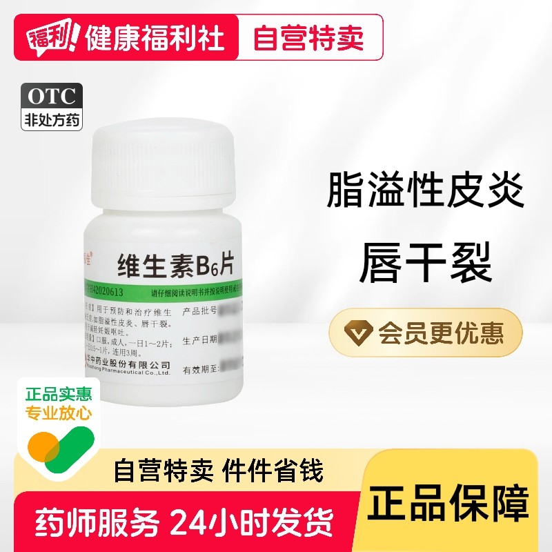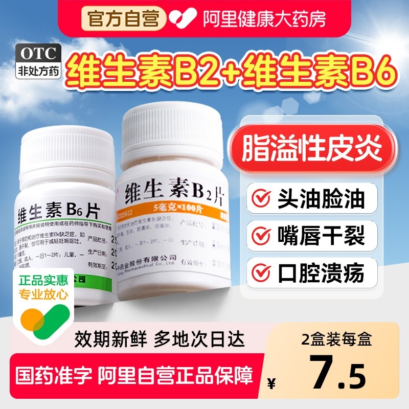 维生素B6片B2片100片脂溢性皮炎维生素b族防脱发掉发嘴巴干裂vb6