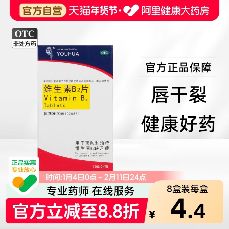 维生素B2片口角炎唇干裂舌炎阴囊炎结膜炎脂溢性皮炎正品旗舰店