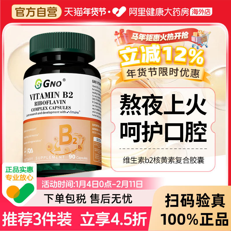 GNO美国进口维生素b2高含量400mg核黄素大剂量复合维b群呵护口腔