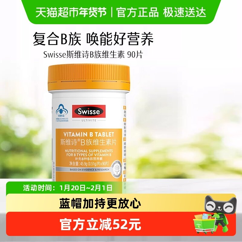 Swisse斯维诗蓝帽子维生素b族叶酸男女多种复合维生素b2b6b12官方