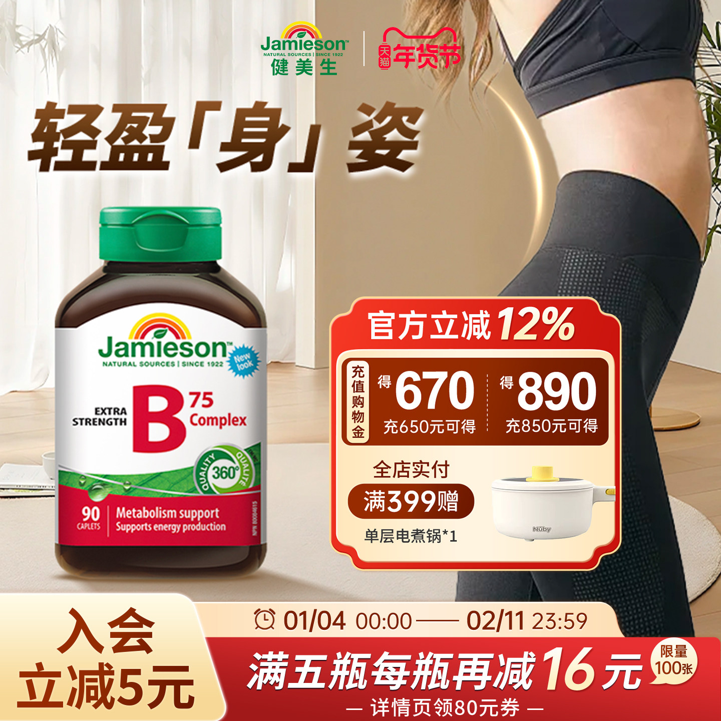 jamieson健美生进口复合维生素b族vb维生素b2/b3/b6/b7/b12生物素