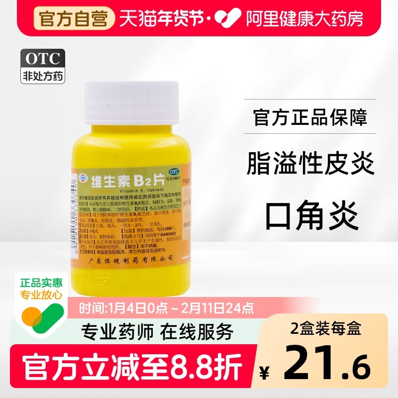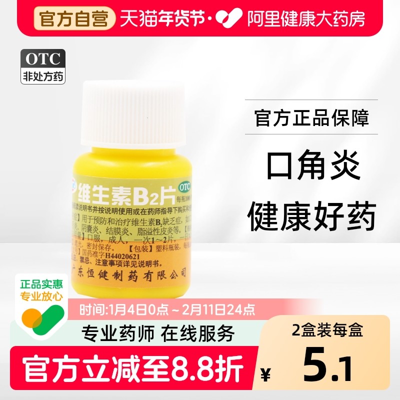 恒健维生素B2片片剂口腔专用钓鱼旗舰店复合流星雨官方药房药店b6