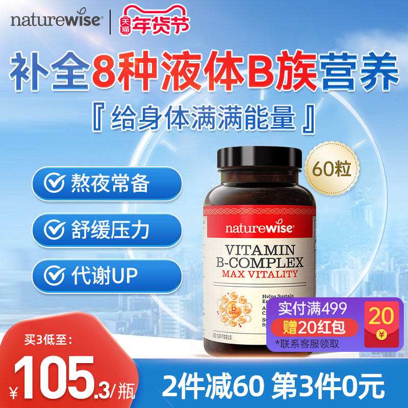 Naturewise液体活性维生素b族片复合维生素b2b12b1叶酸生物素代谢