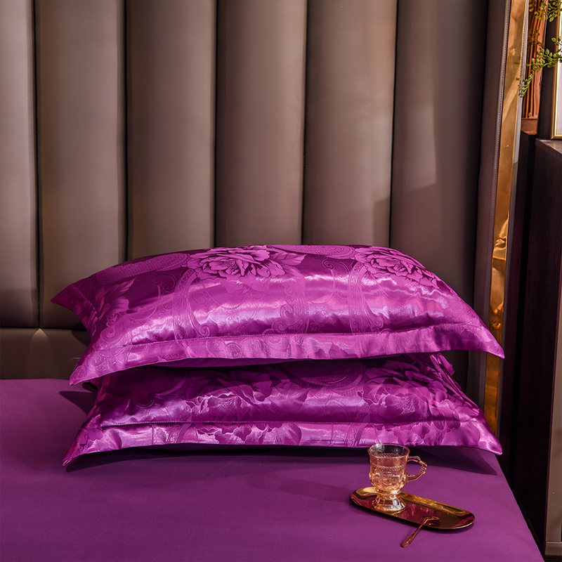 提花丝绸枕套蓝色红色紫色米白玫红粉色金色银灰色玉色枕头套一对