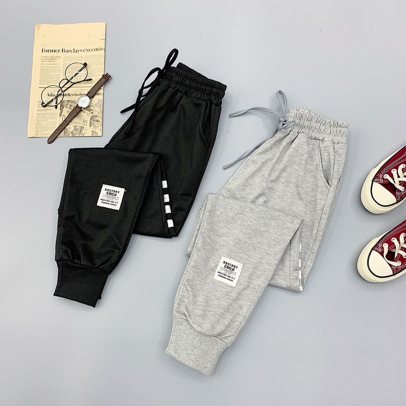 高街港式百搭灰色束脚裤女bf日系ulzzang简约薄款显瘦休闲裤卫裤