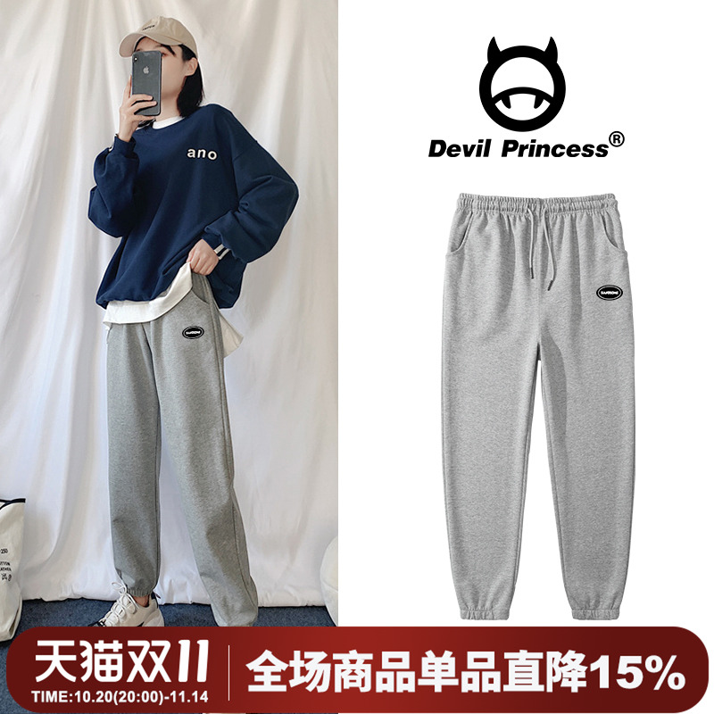 ins运动裤女春秋宽松韩版潮ulzzang学生显瘦百搭束脚炸街休闲卫裤