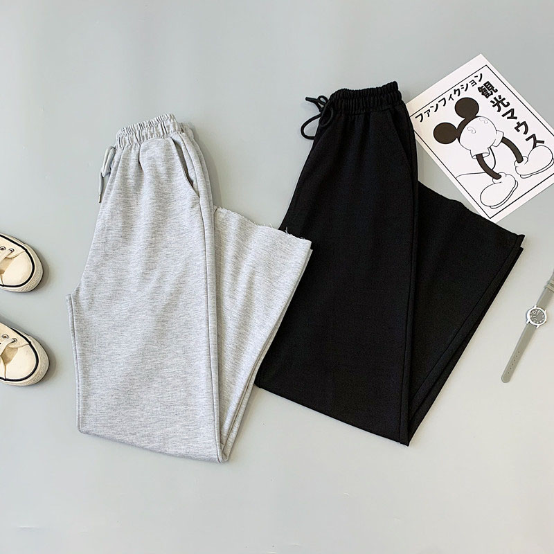 DG instudio秋季新款高腰显瘦抽绳宽松阔腿脱底裤纯色休闲卫裤女