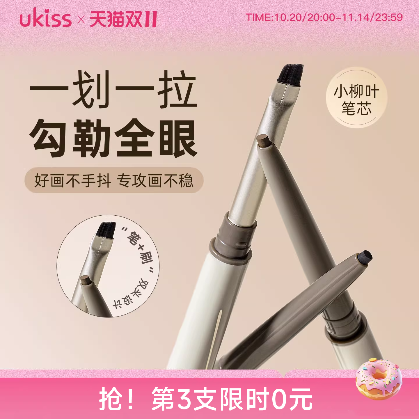 ukiss刀锋眼线胶笔防水不晕染双头极细眼线笔持久棕色新手初学者