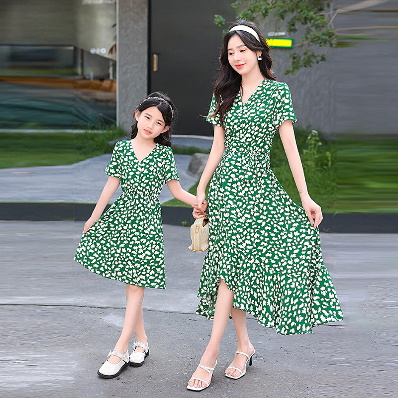 炸街高端亲子装连衣裙夏季碎花海边度假母女装新款公主裙洋气长裙