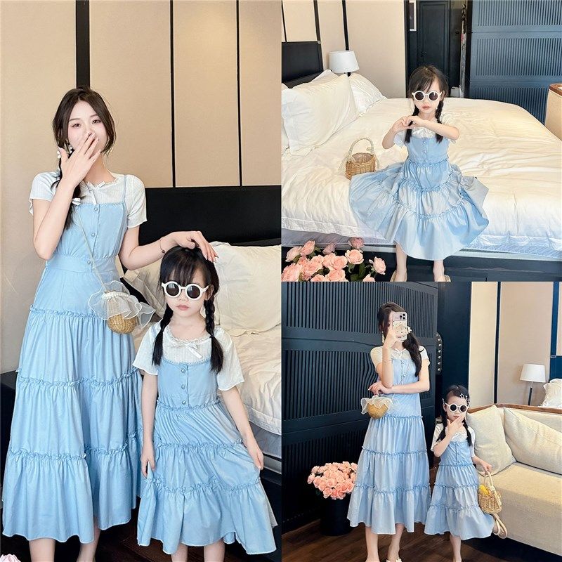 不一样的高端亲子装连衣裙夏季新款女童洋气母女装韩版大童牛仔裙