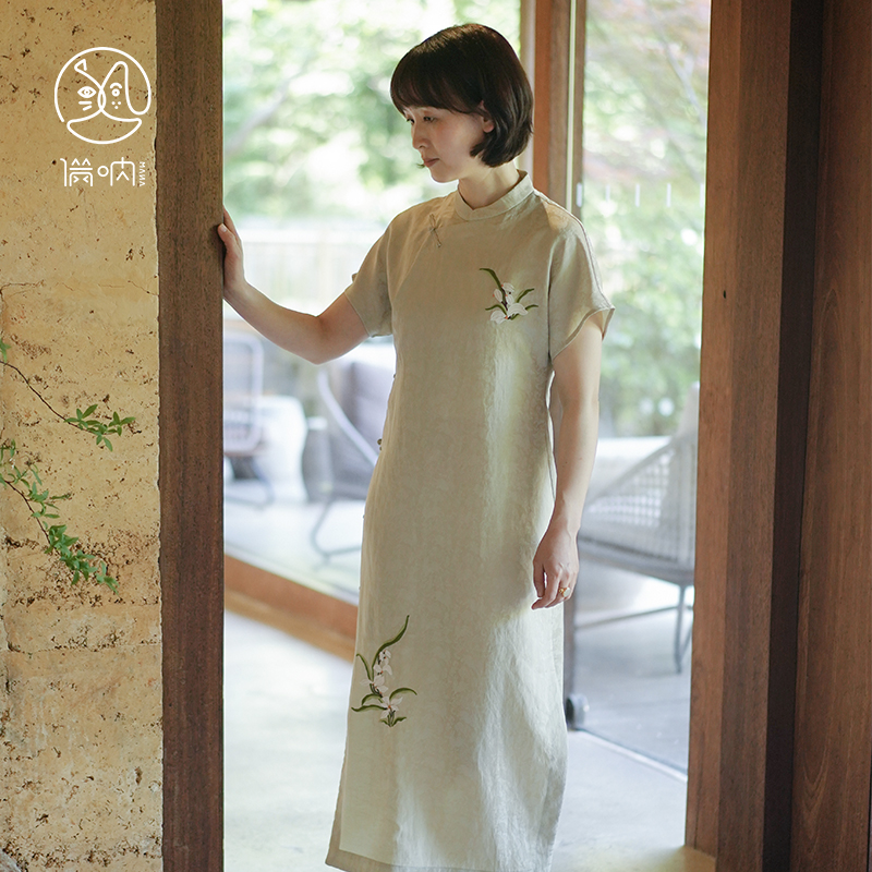 儿童旗袍夏女孩大童演出服女童棉麻唐装小孩小童亲子装连衣裙礼服