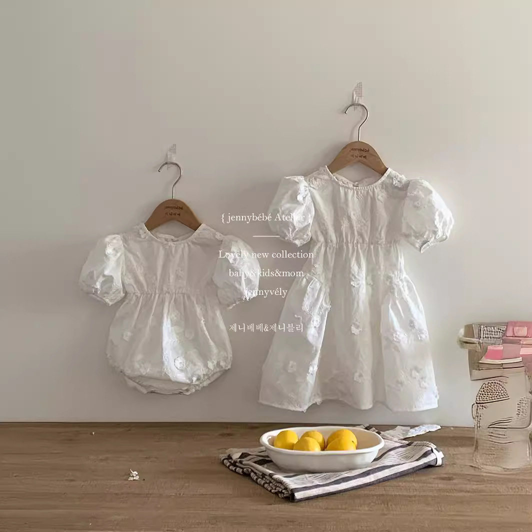韩版童装 夏季新款 亲子装连衣裙婴儿女宝宝刺绣提花爬服女公主裙