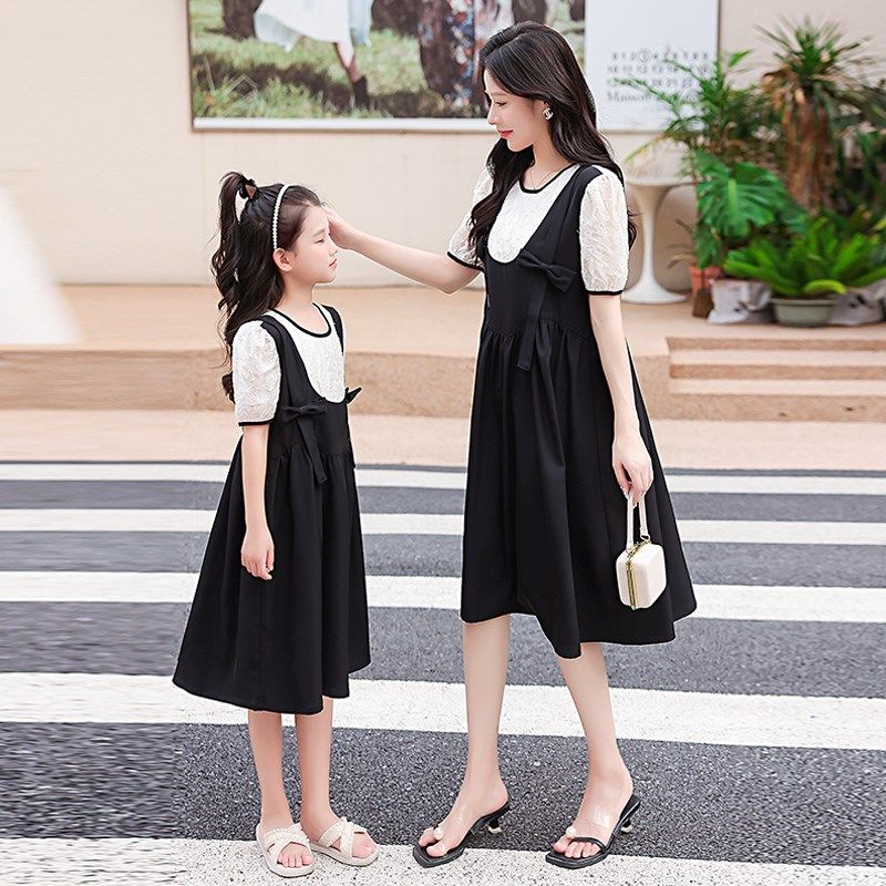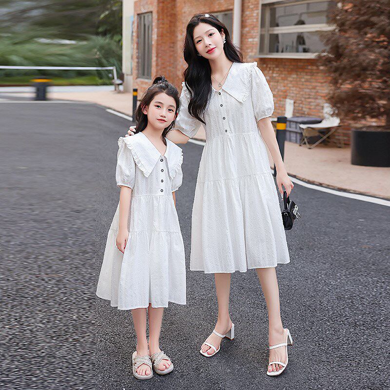白色不一样的炸街洋气母女装亲子装连衣裙2024年夏季新款宽松裙子