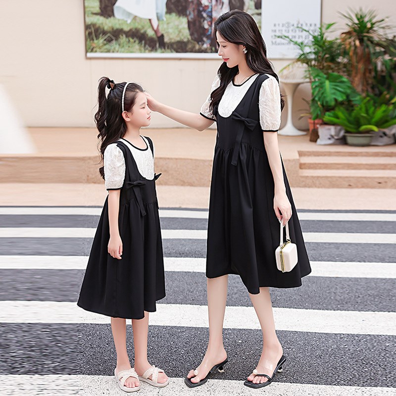 高端炸街亲子装连衣裙2024夏季新E款潮韩版洋气时尚大码宽松母女
