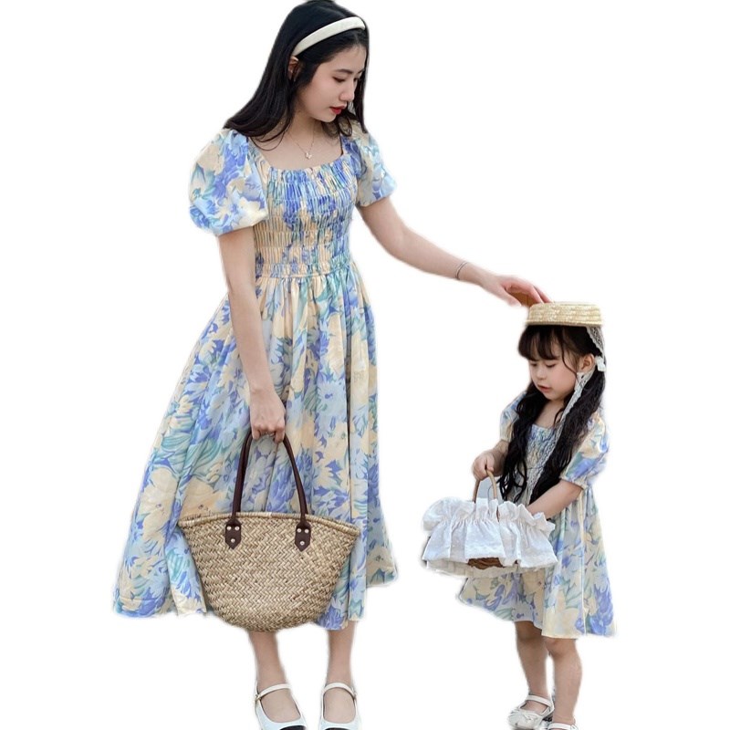 高端炸街亲子装连衣裙夏季2025新款长裙母女装纯棉显瘦洋气度假裙