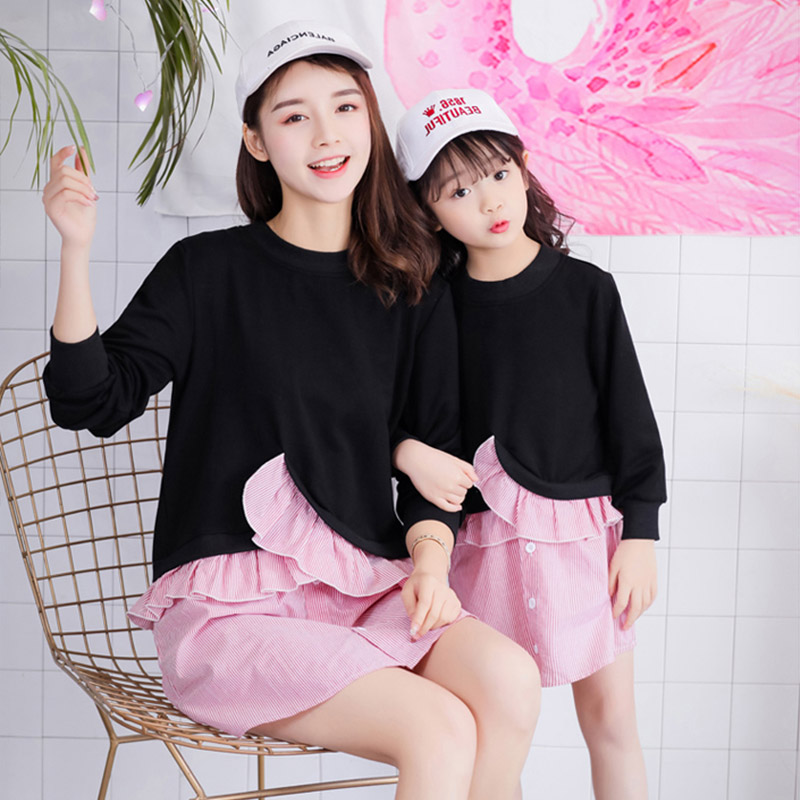 酷伽夏季简约圆领拼接假两件中长款荷叶边卫衣裙亲子装连衣裙805