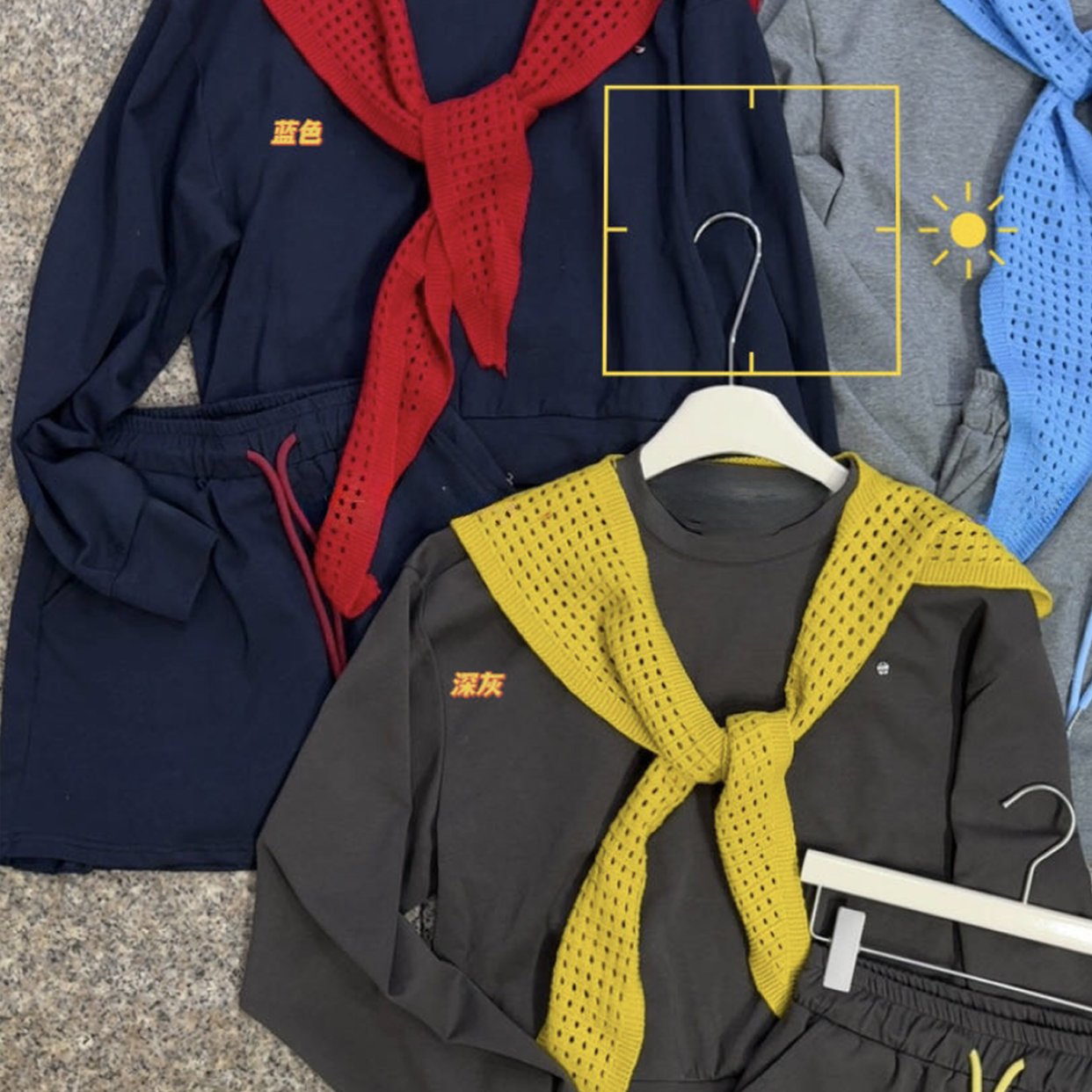 2025秋季新款韩版显瘦叠穿棉时尚镂空针织披肩+卫衣套裙三件套