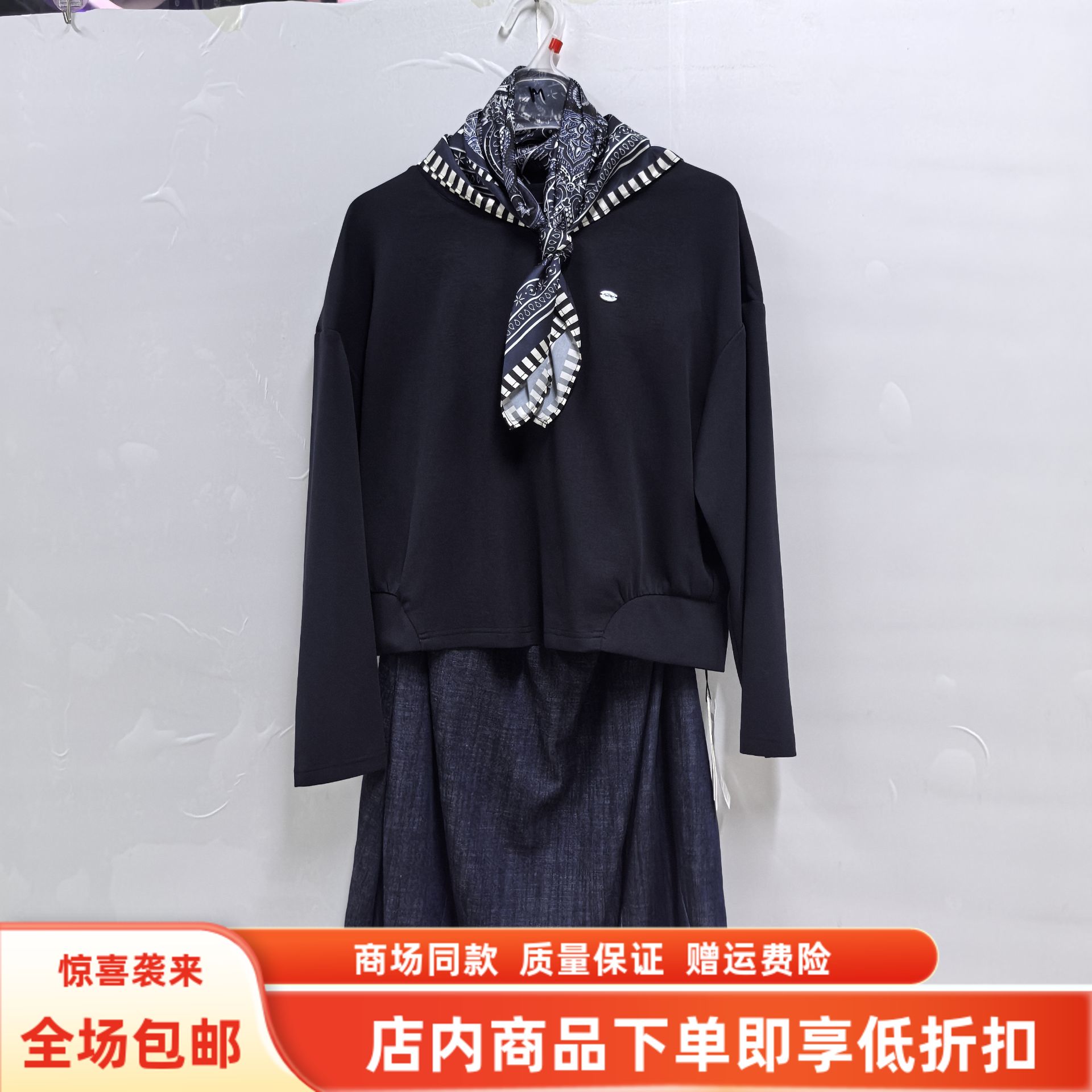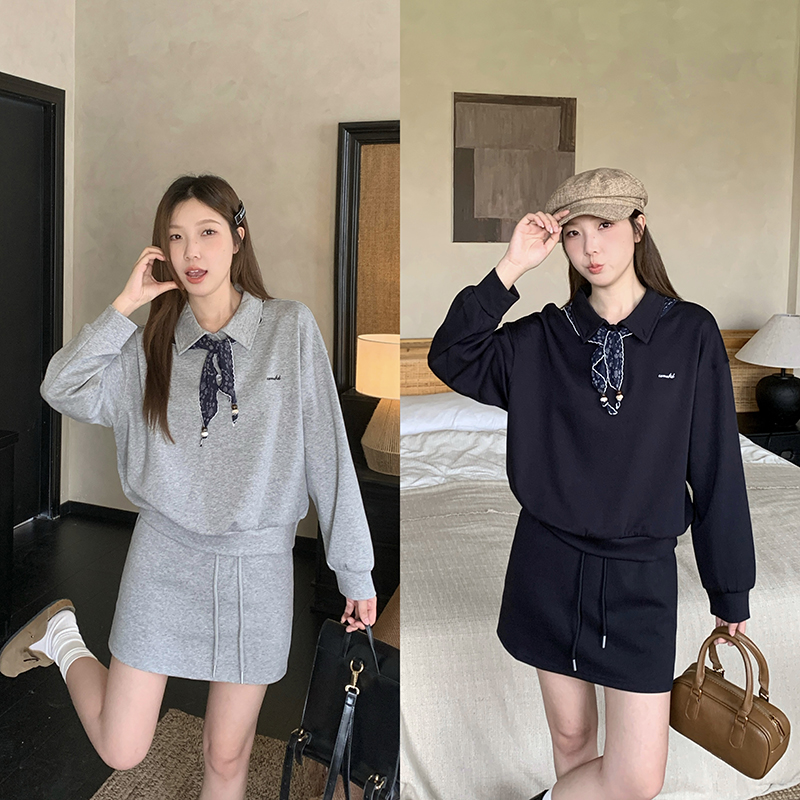 维凡欣FKCT653秋装2025女新款时尚韩版丝巾卫衣半身裙两件套套裙
