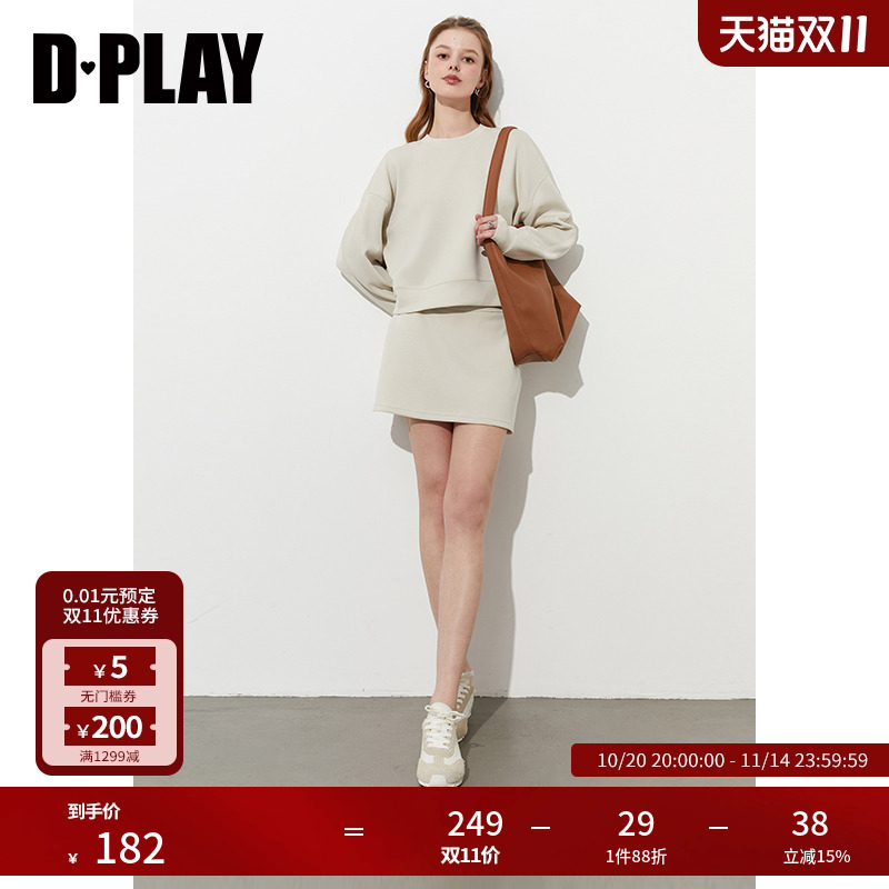 DPLAY2025年春季新款白色套装女lulu上衣卫衣外套裙子短裙搭配