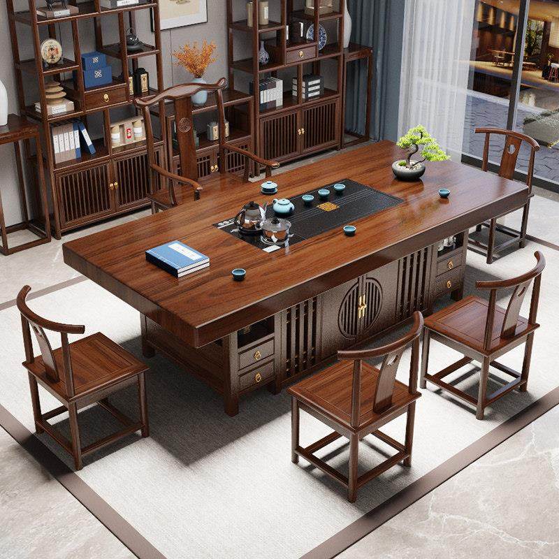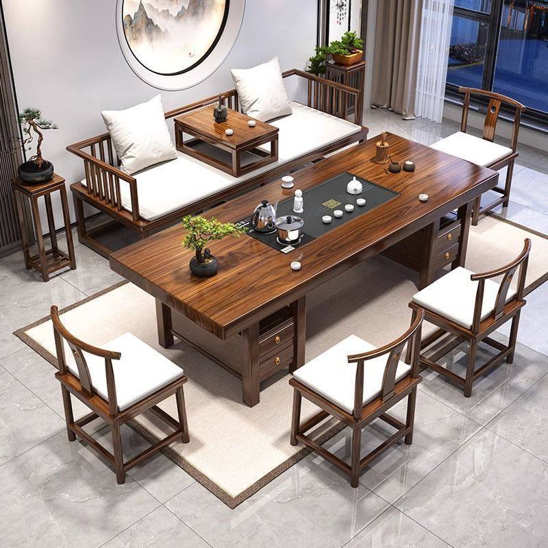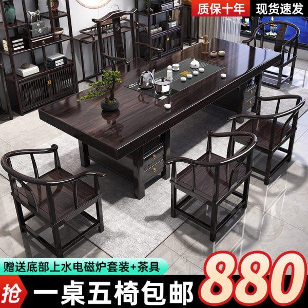 大板实木茶桌椅组合一桌五椅新中式家用简约茶几办公室泡茶台一体